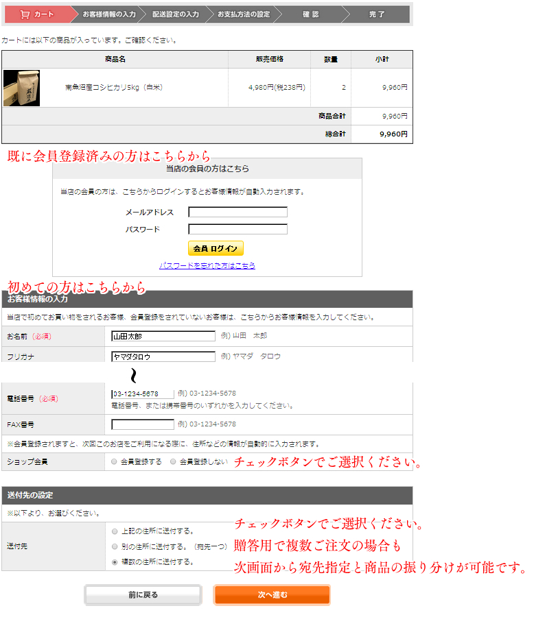 ・のしの貼付やお届け日時等、ご希望がございましたらご注文画面1ページ目の「備考欄」へご記入ください。