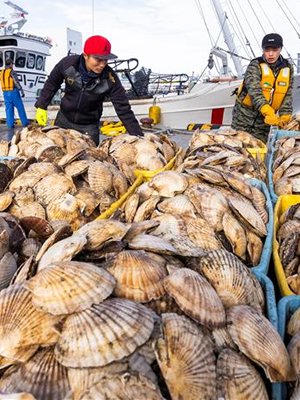 激しい潮の流れと豊壌の海が、野付のホタテを大きくおいしく育てます。