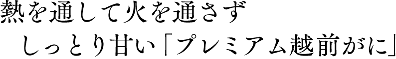 そこで水揚げされる最高品質の越前ガニを、「プレミアム越前がに」と呼びます。しっとりとした身を口にすると、絶妙な茹で加減で引き出された旨みが潮の香りとともに広がり、うまいことにかけては他の蟹にはない“高貴で上品な美味しさ”が味わえます。