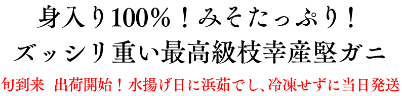 身の詰まりもさることながら、なんと言っても格別なミソの旨さが人気です。甘くて濃厚!「クリーミー」という表現がピッタリで、今まで蟹ミソが苦手だった方も病み付きになるほど・・・。