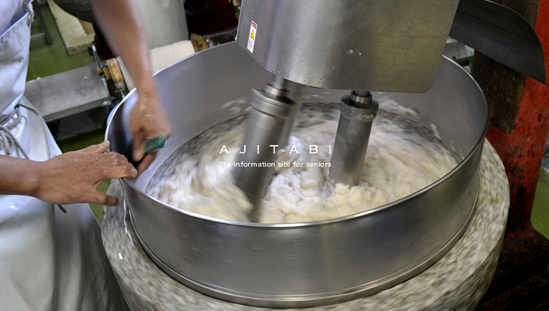 ベースの魚肉に手割りした卵と、甘さ控えめながら旨味とコクを引き出す3種類の砂糖を独自ブレンドして加え、石臼で丹念に練り上げます。