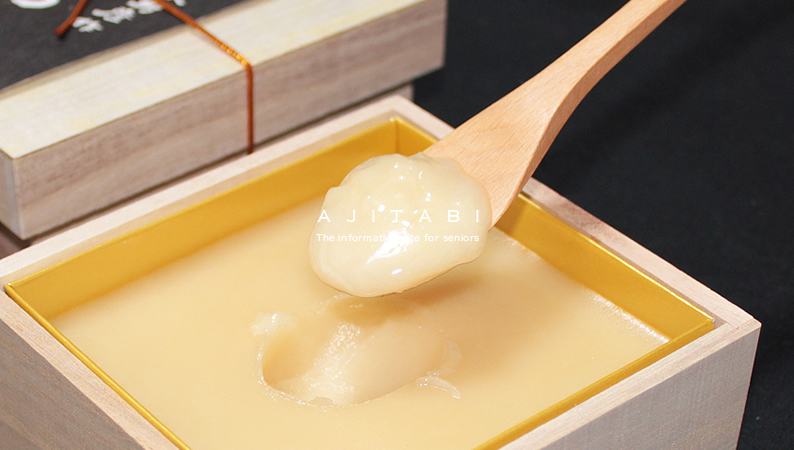 ゆっくりと、ゆっくりと固めることにより、まるでクリームのような、なめらかな口当たりをもつ「箱みつ(箱蜜)」が出来上がります。